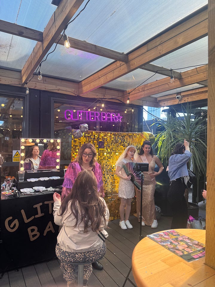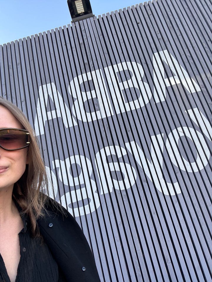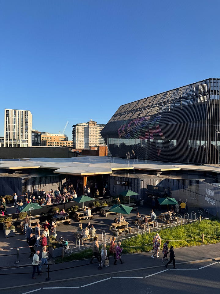 After an overnight flight, I arrived Saturday morning, checked into my hotel in Covent Garden, and set off for the day. I decided to wander toward the Tate Modern to look at some art before journeying to the most spectacularly named Tube stop (Pudding Mill Lane!) for a 3pm ABBA Voyage experience. ABBA Gold was one of the first CDs my parents ever bought me, and, as a Swedish girl with a flair for the dramatic, I sang ABBA songs constantly. I went solo, did the Dance Floor/General Admission experience, and had a BLAST. Everyone was in full ABBA cosplay. I, spiritually aligned but visually not, showed up in all black. Putting that aside, it is impossible not to shake ass and sing along. The technology is deeply impressive. I do not know how they did it. I need a version in New York, Vegas—anywhere in the States—immediately.